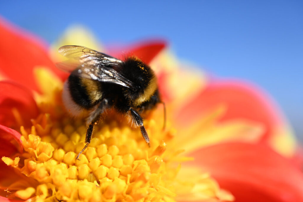 Une fleur et l’abeille qui la butine. Cette magnifique photo est due à notre photographe et écrivain Ralph Schafflützel qui vient de sortir son ouvrage « Les aventures de Dary – la découverte de soi – dont nous vous parlerons sous peu.