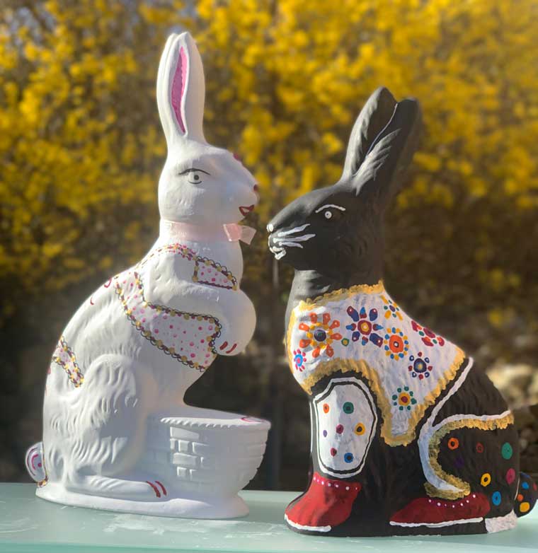 Ces douze lapins semblent sortir d’un temps suspendu, entre mémoire populaire et poésie contemporaine. Ils portent en eux quelque chose de l’enfance, du printemps, du retour du vivant. Un geste, une tradition, une lumière.