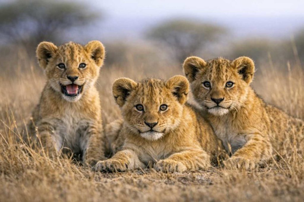 L’aube se levait sur la savane comme un rideau qu’on soulève d’un geste souverain. Au loin, les herbes ondulaient sous le souffle du vent, vastes comme une mer verte et chaque rayon naissant de l’astre du jour semblait réveiller mille et une créature. C’est là, dans cette cathédrale de lumière et de poussière, que mon photographe et moi aperçevâmes trois lionceaux, trois éclats de vie, trois promesses de puissance encore fragile. Devant nous, la nature déployait sa grandeur première, indomptée, majestueuse, et l’instant avait la solennité d’une révélation. Oui, il est des matins où la savane semble retenir son souffle, comme si l’aube hésitait à dévoiler ce qu’elle a vu pendant la nuit. C’est dans ces heures suspendues que les lionceaux apparaissent, petites braises fauves posées sur l’herbe encore fraîche. Ils avancent d’un pas incertain, l’air de croire que le monde entier a été créé pour leur offrir un terrain de jeu. Et pourtant, derrière leurs yeux ronds et leurs moustaches encore trop courtes, se cache déjà la gravité d’un destin royal.