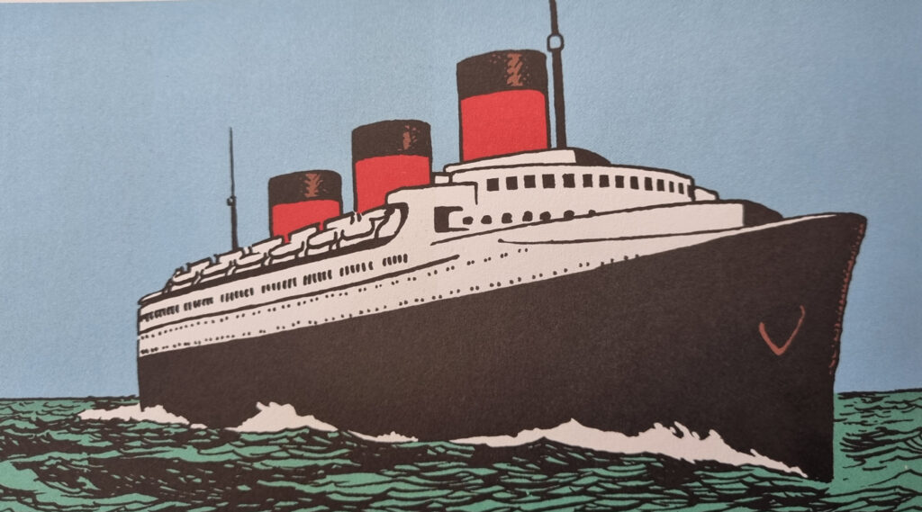 Dans Tintin en Amérique, Tintin effectue sa première traversée de l’Atlantique à bord d’un paquebot auquel Hergé ne donne aucun nom.