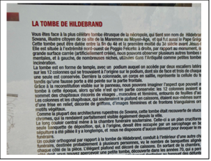 Dans le parc archéologique de Sovana, je m’arrête devant le panneau qui me fournit des informations totalement incompréhensibles au sujet de la tombe de Hildebrand. A y perdre son étrusque, vous dis-je. En fait, cette tombe, découverte par l’archéologue britannique George Dennis en 1843, fut nommée Tomba Pola. Il y a 99 ans, en 1925, elle fut renommée Tomba Ildebranda, par l’archéologue Gino Rosi. Mais pourquoi Diable a-t-on rebaptisé ce monument monumental (si, si j’ai voulu le pléonasme !) ? Pour honorer Ildebrando da Savona, devenu pape sous le nom de Grégroire VII, nous dit-on